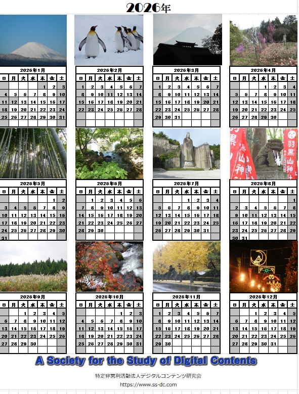 | 「未来カレンダー」で作った2026年度の月別カレンダーです。 ・「花カレンダー」と「風景カレンダー」があります。ダウンロードしてご活用ください。 ・表紙以外の写真は、自由に入れ替えができます(やり方は特集「未来カレンダー」を参照してください)。 ・カレンダーはエクセル形式で作成しています。ダウンロードをクリックしてください。 ・ダウンロードファイルは解凍してご使用ください。 ・マイクロソフトのセキュリティで開けない場合は、フォルダーのプロパティで許可するにチェックを入れて実行してください。 ・著作権はデジタルコンテンツ研究会にありますので、他への無断転用はできません。 |